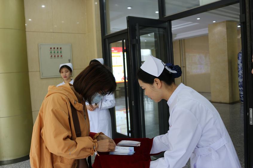 5月12日,为庆祝国际护士节,beat365中国官网团委联合大学生礼仪协会,组织学生于明德楼门前统一身着护士服,向往来的各位教师、学生发放书签,并送上节日寄语。