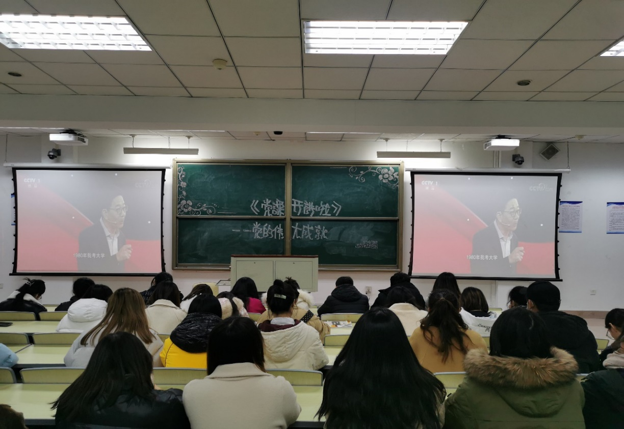 为深入学习贯彻习近平总书记在庆祝中国共产党成立100周年大会上的重要讲话精神,2021年10月31日,beat365中国官网党委组织全体教工党员自行观看、在校生学生党员和积极分子于致知楼1220教室集中观看由中共中央组织部、中央广播电视总台联合录制的《党课开讲啦》第三期节目——《党的伟大成就》。