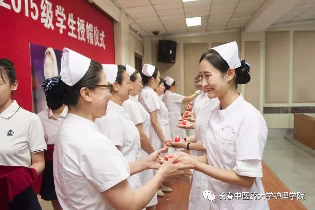 崭新的燕帽,象征着圣洁的天使;火红的蜡烛,象征着“燃烧自己,照亮别人”的南丁格尔精神。伴随着乐曲“平安夜”的优美旋律,2015级193名学生在护理前辈面前戴上燕尾帽、接过红烛,传承南丁格尔精神。在基础护理教研室王洋主任的领誓下,学生们进行了庄严的宣誓,一句句铿锵有力的誓言让大家深刻感受到自己所从事的这份职业的神圣感、使命感和责任感。李晓娟同学作为2015级学生代表进行了发言。