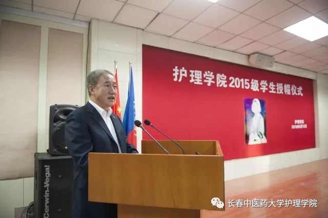 仪式开始,刘兴山院长对2015级学生提出了三点希望:坚定信念,发扬南丁格尔精神,做好护理事业的接班人;努力学习,不断加强护理理论与实践,为助力健康中国贡献青春力量;团结协作,共同弘扬护理人精神。