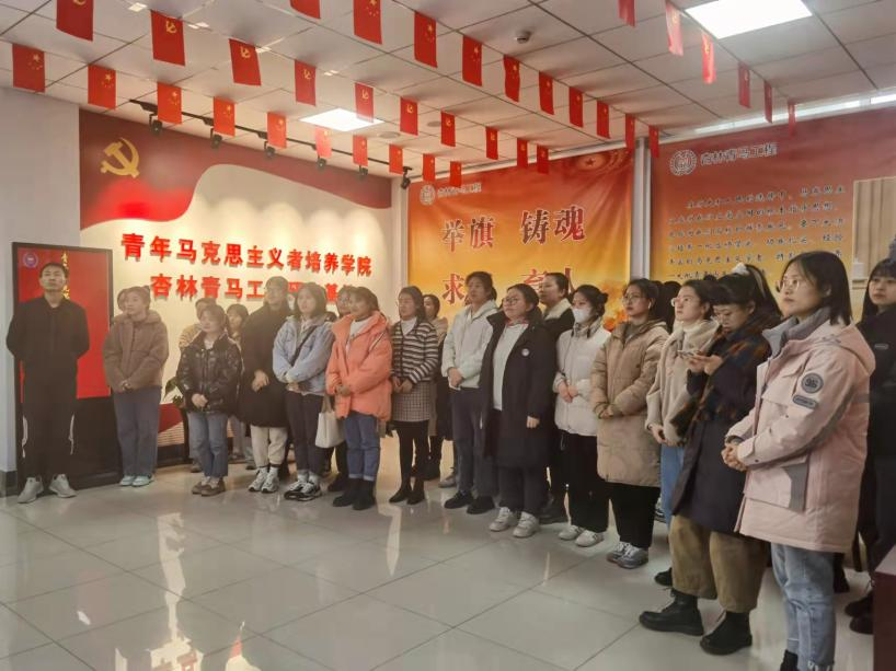 参观开始,宣讲员从培养理念和选拔机制等方面为大家详细介绍了“杏林青马工程”的基本情况。基地采用的是“14235”的培养模式,其中宣讲员为大家特别讲解了培养模式中的“五行”计划及其对应的具体实施方案,充分展现了我校深刻贯彻落实培养优秀青年的这一重大举措。之后,在宣讲员的带领下,同学们先后参观了杏林青马成果图片展、多功能教室、沙龙活动室等教学活动场所,深刻感受到了杏林青马学员学习马克思主义的浓厚氛围。
