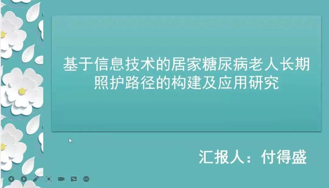 付得盛同学分享的文献为《基于信息技术的居家糖尿病老人长期照护路径的构建及应用研究》,她主要从居家糖尿病老人目前长期照护需求、长期照护的有效性、基于信息技术进行长期照护的优点等方面进行了讲解,并提出了自己的观点与今后护理努力的方向。通过她的分享,让同学们更加关注信息技术在临床中的应用。