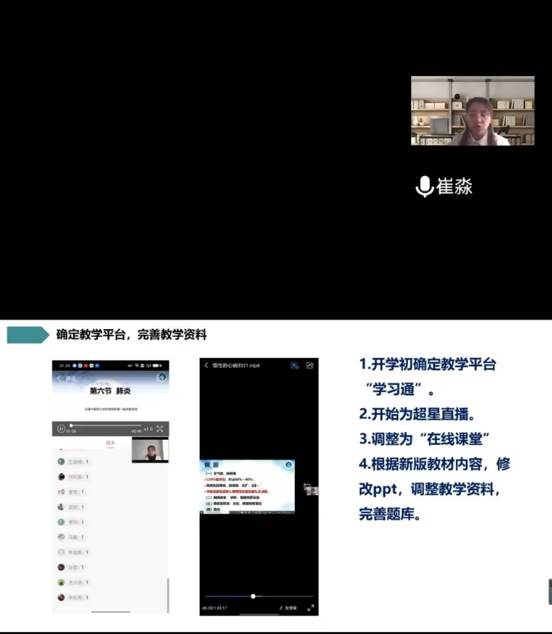 4月20日下午,beat365中国官网召开线上全院大会,学院全体教师参加。会议邀请中医护理教研室刘向荣老师、第一临床护理教研室崔淼老师分享线上教学经验。两位老师分别从《中医养生与食疗》《儿科护理学》线上授课过程中教学平台的选择;教学资源的组建;课前教师与学生的准备;教学过程中的课堂互动、讨论、测试;教学评价、教学反馈等方面向全院教师做了精彩的分享交流。