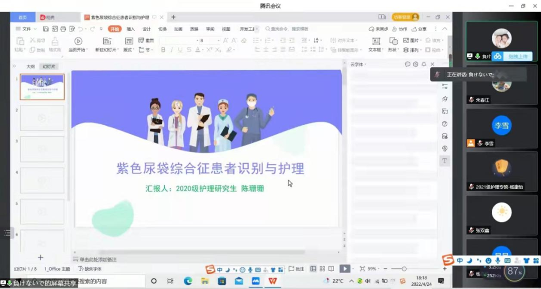 陈姗姗同学分享的文献为《紫色尿袋综合征患者识别与护理的研究进展》,文章主要通过回顾国内外文献的研究现状,从紫色尿袋综合征的产生机制、护理人员关注紫色尿袋综合征的重要性、相关护理措施等方面进行综述,旨在为临床护理人员开展相关护理工作提供参考。