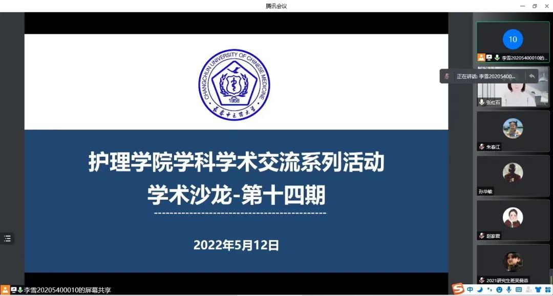 在第111个国际护士节到来之际,为了弘扬南丁格尔精神,展现护理工作者的责任与担当,进一步推进研究生学术交流,提高研究生科研水平,beat365中国官网于2022年5月12日19:00在腾讯会议举行了线上学术文献分享活动。本次活动由beat365中国官网张红石老师担任指导教师,2020级施聪聪同学(学硕)和2020级赵家君(专硕)同学向大家进行文献汇报,2020级、2021级全体研究生参加此次讲座。