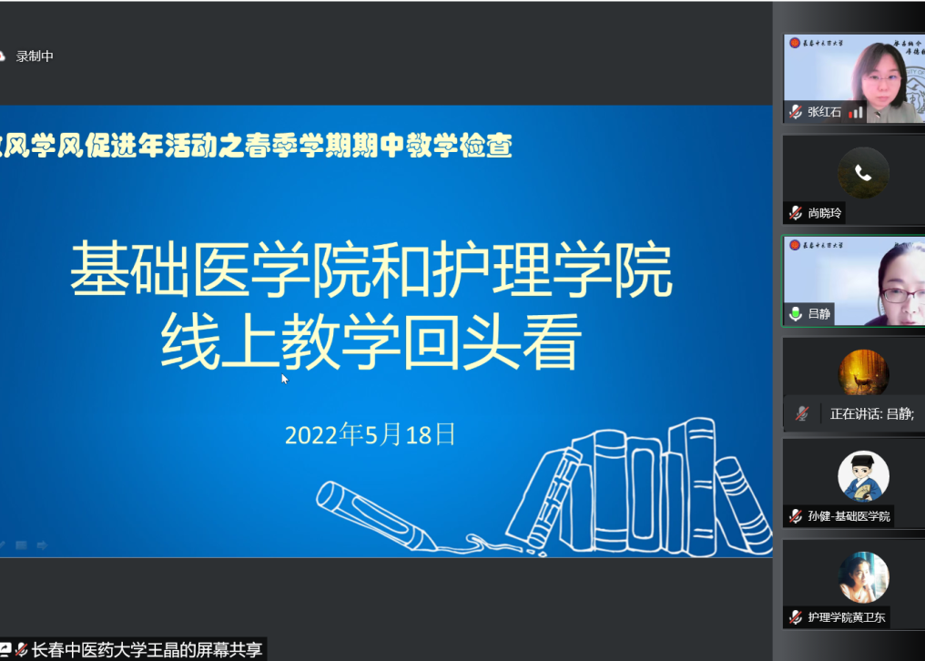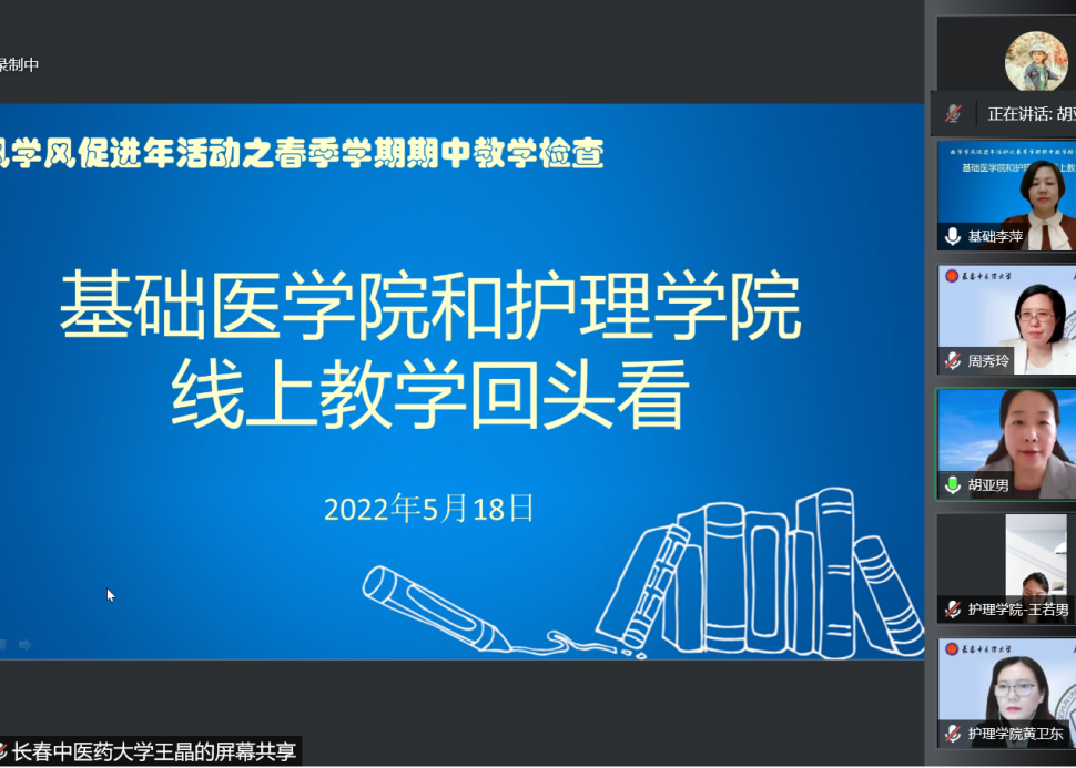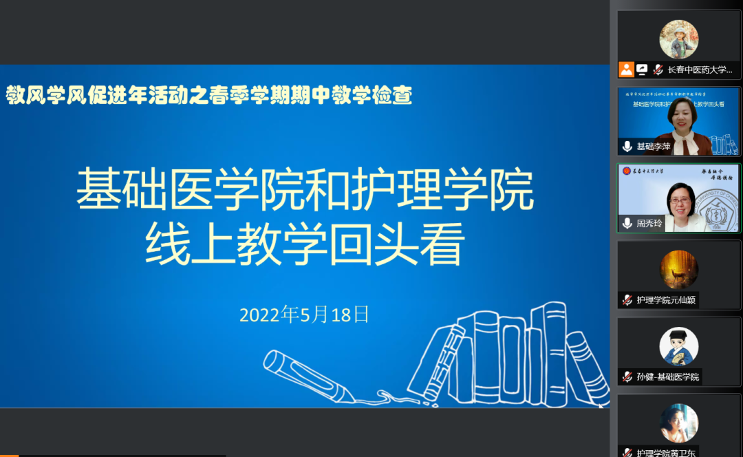 5月18日下午15:40分,beat365中国官网和基础医学院以2022年春季学期期中教学检查为契机,围绕教风学风促进年活动,召开“线上教学回头看”线上座谈会。周秀玲院长、李萍副院长、杨陆副书记、张红石副院长以及beat365中国官网、基础医学院教师代表参加本次会议,李萍副院长主持会议。