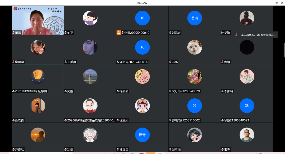 分享结束后,董雪老师对两位同学的分享做出精彩点评,分别从文章的纳排标准、质性研究对象的选择,样本量等方面进行讲解,指出在论文中讨论部分应该按照结果-原因-措施等格式写作,以及学术论文中创新点的书写方式和整体行文思路的完善等。最后提出,在学术论文写作过程中一定要端正自己的态度,科研之路才能走得越远。
