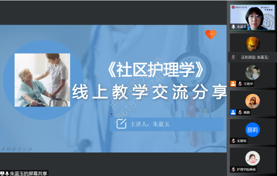人文护理教研室朱蓝玉老师结合《社区护理学》进行线上教学经验分享。课上开展线上理论课与实训课相结合的模式,课前查找充足的课外教学资源、课中以“以学生为中心”组织线上教学、课后进行主题讨论与答疑,布置课后作业。通过线上理论课与实训课相结合,培养学生探求真理的能力,引导学生巩固重难点,加强知识点的掌握,培养学生创新思维与临床思维,进一步提高学生自主学习能力。
