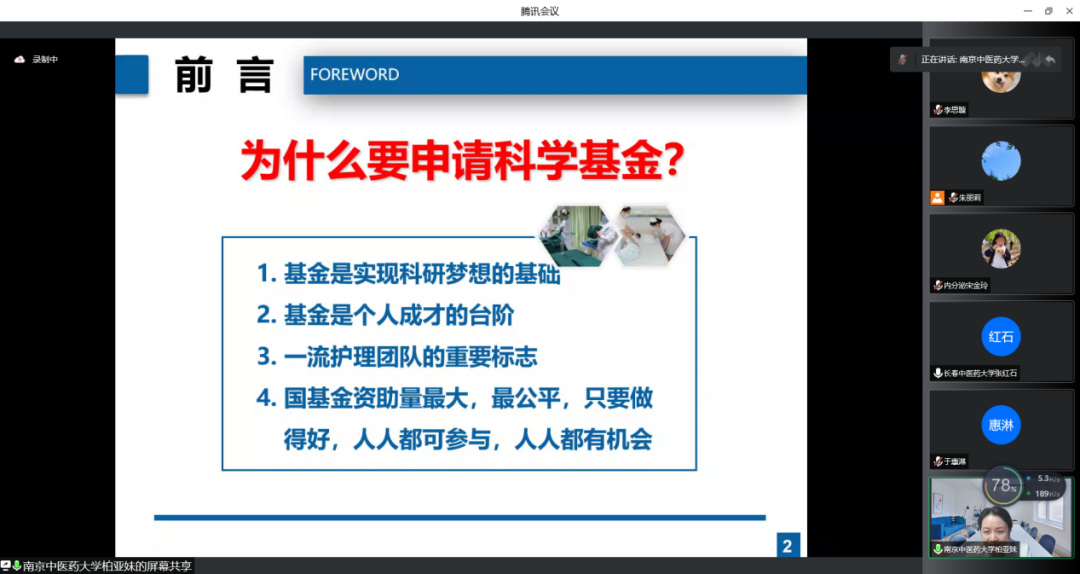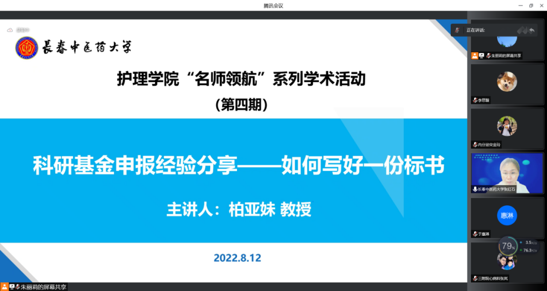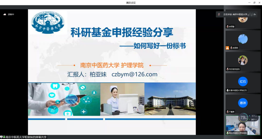 2022年8月12日晚上18:30,beat365中国官网护理学科举办线上“名师领航”系列学术活动,南京中医药大学beat365中国官网副院长柏亚妹教授围绕“科研基金申报经验分享-如何写好一份标书”作主题报告。本次讲座由副院长张红石主持。护理学科全体成员、全体研究生导师、附属医院、附属第三临床医院、全体研究生等200余人参会。