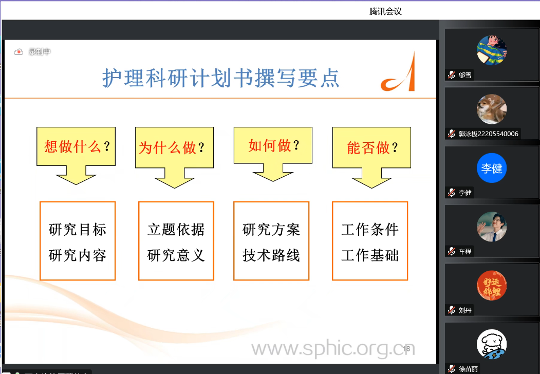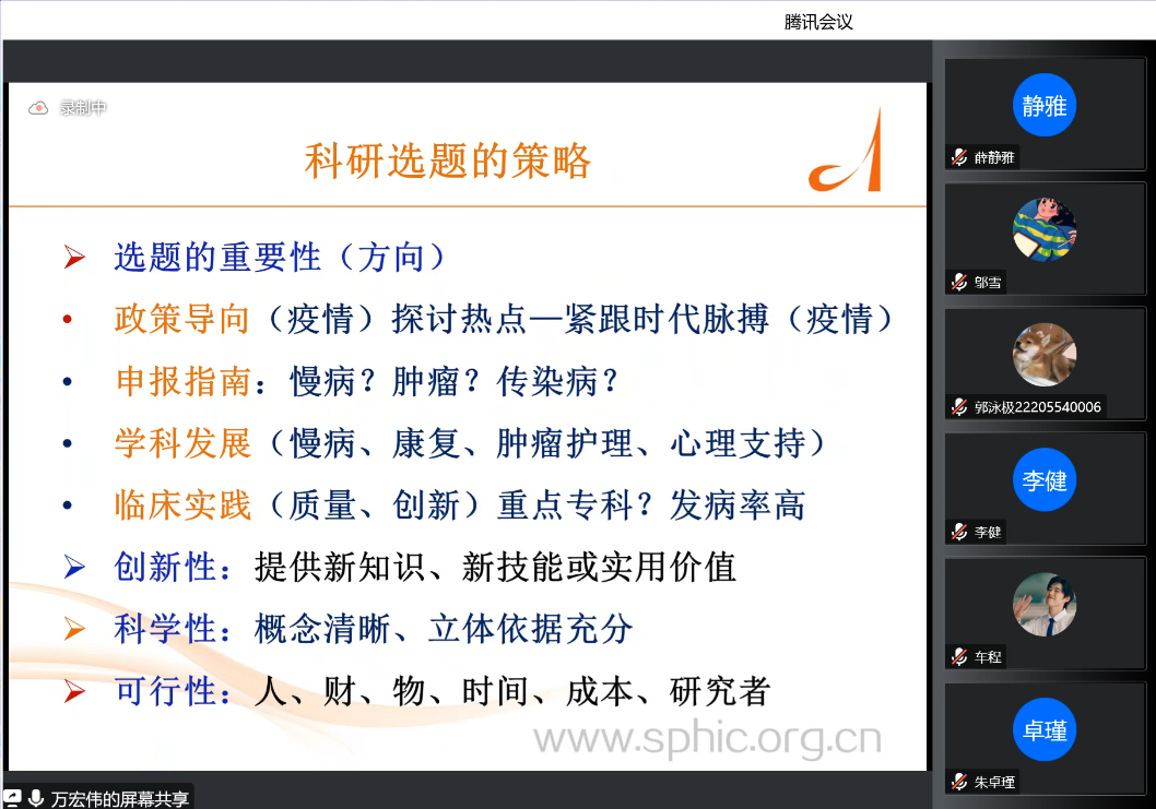 为进一步加强教风学风建设,全面提高研究生教育教学水平,培养高素质护理人才,11月14日,学院邀请复旦大学博士生导师、教育部学位中心评议专家、中国博士后科学基金评审专家万宏伟教授开展线上专题讲座。本次讲座由周秀玲院长主持,学院部分导师及2022级全体研究生参会。