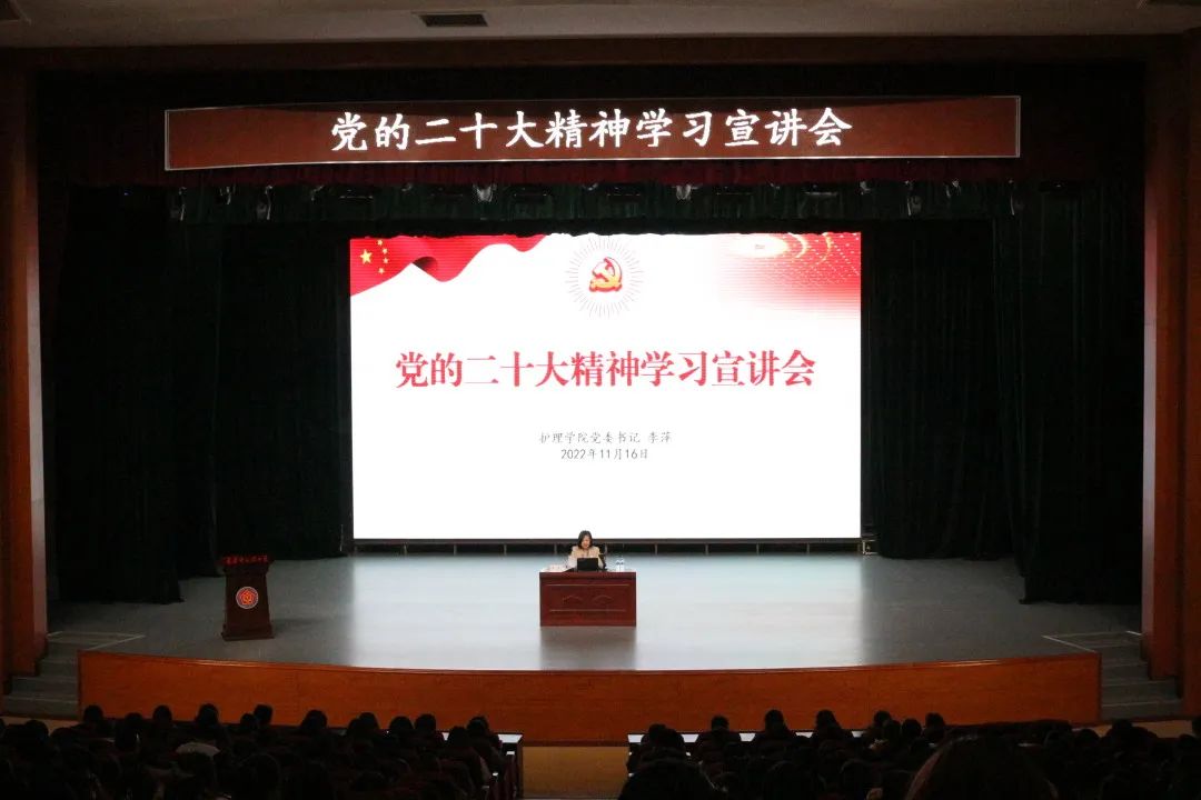 11月16日,beat365中国官网在学校四象城剧场举办党的二十大精神学习宣讲会,学院党委书记李萍同志进行党的二十大精神专题宣讲。