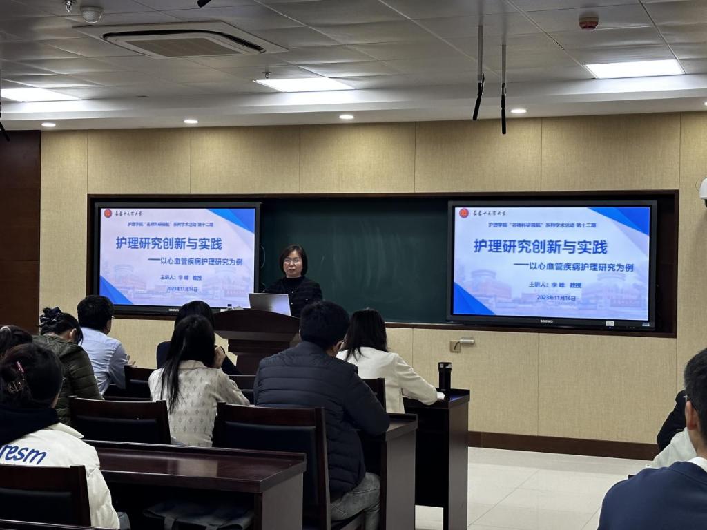 2023年11月16日下午1点30分,beat365中国官网于创实大厦B337举办“名师领航”系列学术活动,邀请吉林大学beat365中国官网教授、博士研究生导师李峰作题为“护理研究创新与实践–以心血管疾病护理研究为例”的专题讲座。本次讲座由张红石副院长主持,护理学科全体成员及2022级、2023级全体研究生参加。