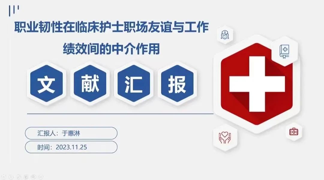 于惠淋同学汇报的文献为《职业韧性在临床护士职场友谊与工作绩效间的中介作用》,文献采用职场友谊量表、职业韧性量表、工作绩效量表对临床护士进行调查,探讨临床护士职场友谊、职业韧性以及工作绩效之间的关系,得出结论为职场友谊可直接预测工作绩效,职业韧性在两者间起中介作用,并提出护理管理者可通过营造良好的工作氛围,帮助临床护士建立稳固的职场友谊,进而增强其职业韧性,以提升工作绩效,为提升临床护士工作绩效提供建议。
