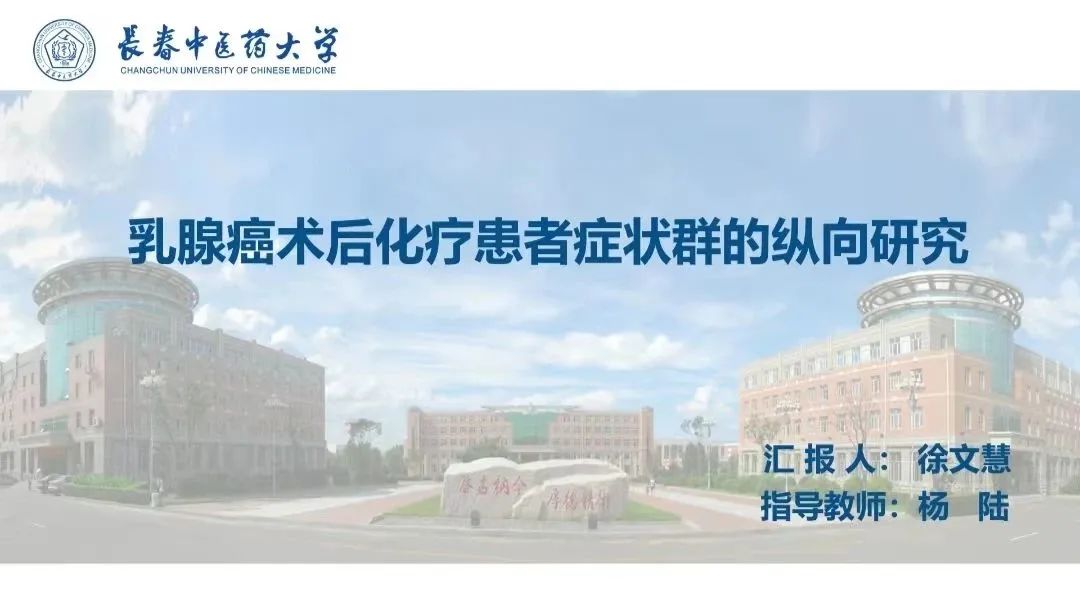 徐文慧同学分享的文献为《乳腺癌术后化疗患者症状群的纵向研究》,文献采用中文版记忆症状评估量表对患者进行评估,调查乳腺癌术后化疗患者不同时间点症状群构成及动态变化, 得出结论为乳腺癌术后化疗患者存在多种症状群,随化疗的开展而增多,症状群的核心症状随时间的推移相对稳定,并提出医护人员应重视患者症状群的动态变化,采取针对性干预措施,以最大限度地减轻乳腺癌术后化疗患者的症状负担,为乳腺癌患者症状管理提供参考。
