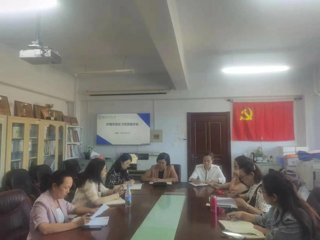 9月13日,beat365中国官网召开实习检查工作座谈会,党委书记李萍、院长周秀玲、副院长王洋、教学秘书顾颜及实习检查组组长参加会议。