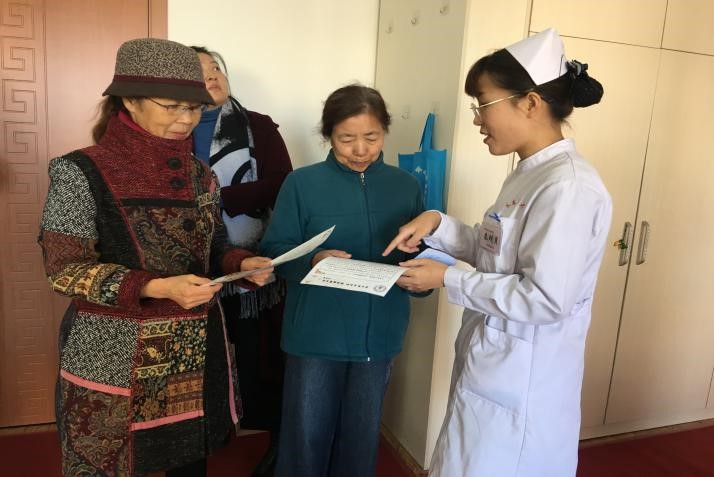 此次活动对社区居民进行血压测量、拔罐、刮痧等基础护理保健服务。为更好地服务社区居民健康,我院学生面向居民讲解养生小常识并发放冬季养生知识宣传单。