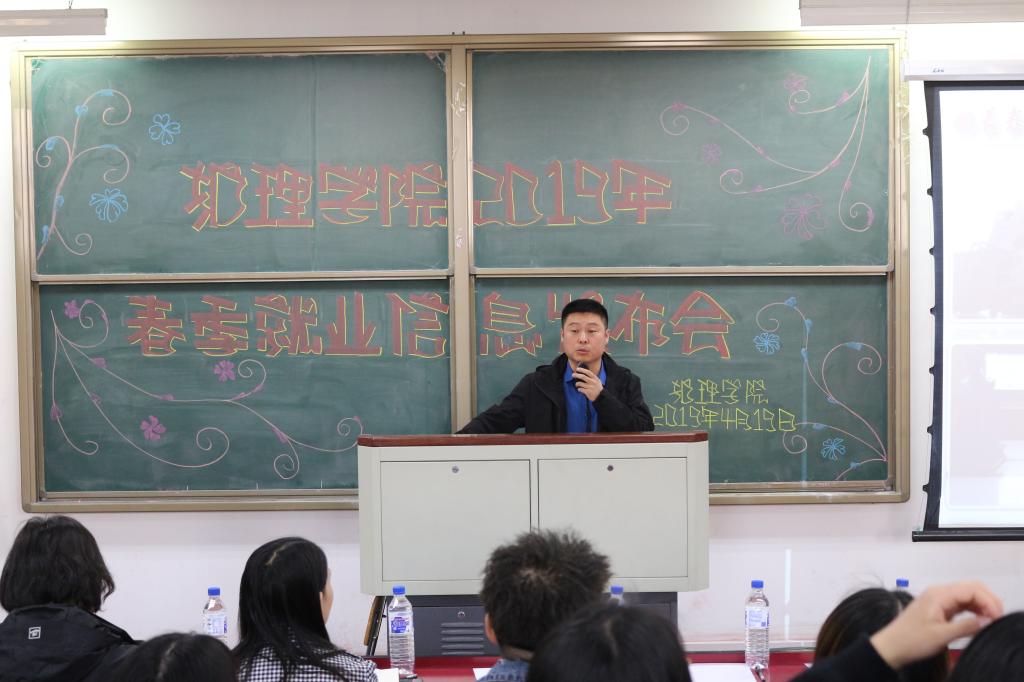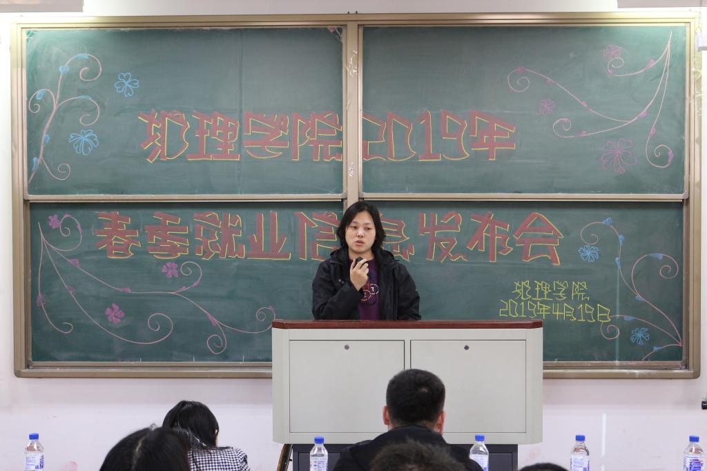 4月19日,beat365中国官网于致知楼1222举办2019年春季就业信息发布会,学校招生与就业处邵欣老师、beat365中国官网党委副书记兼副院长杨陆老师、beat365中国官网学生工作办公室高鹏老师、王雪老师出席此次会议。beat365中国官网2019届、2020届毕业生共200余人参加发布会。