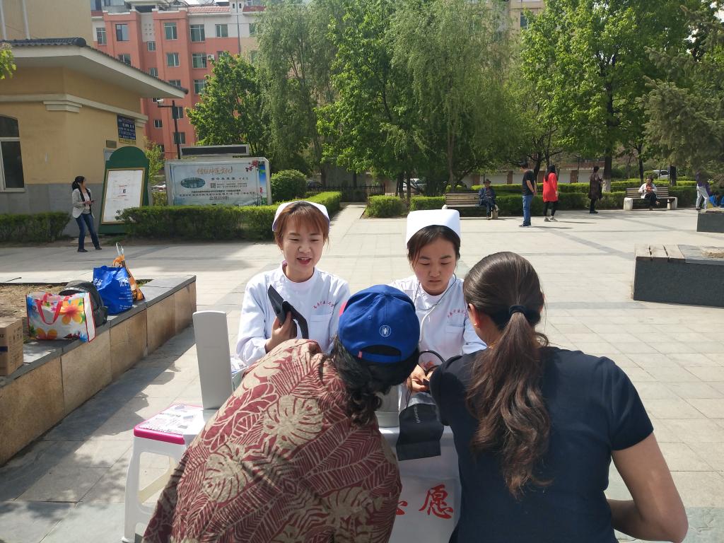 此次活动,服务团成员为社区居民进行测量血压、推拿等基础护理保健服务。为进一步提高社区居民健康水平,加深居民对医疗服务的认识。服务团成员为社区居民讲解高血压、糖尿病等慢性疾病的防治知识并发放春夏季养生知识宣传单。