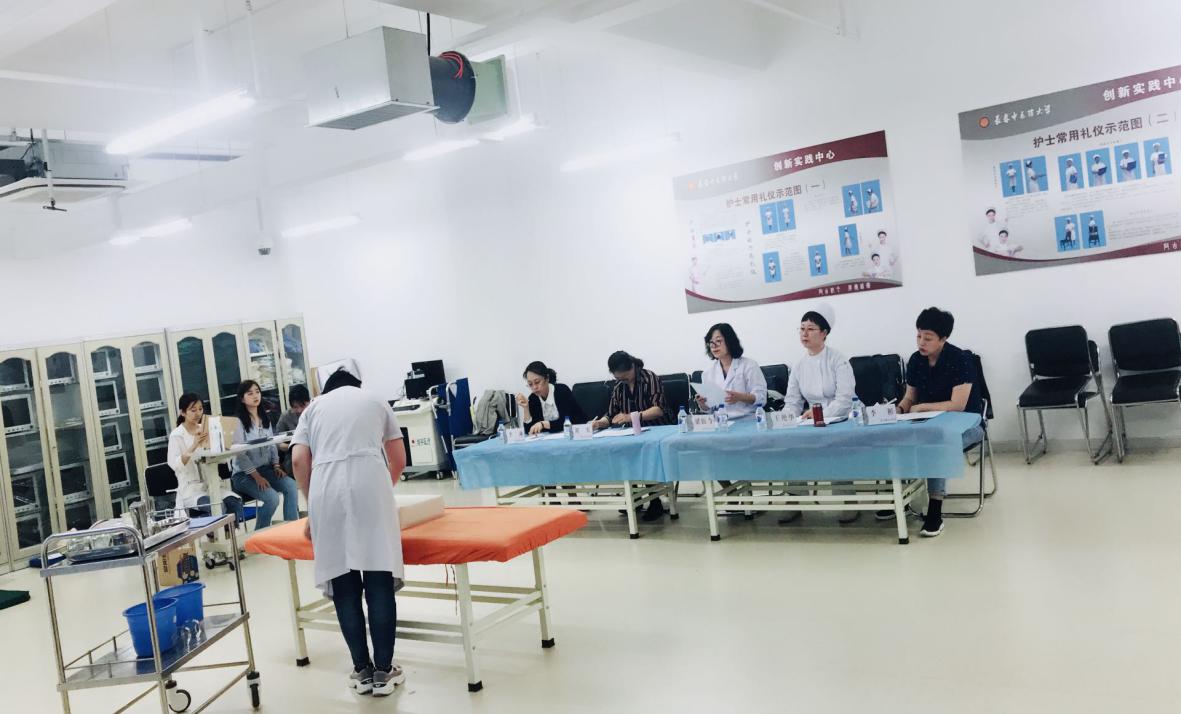 本次毕业考核内容分理论知识考核和技能操作考核两部分。上午9:00,在3219室进行理论知识考核,下午13:30,在创实大厦C316技能操作考核正式开始。技能操作考核由我院梁伍今副院长担任考核组组长,王艳华、刘虹、李彬、李琳四位老师担任评委。技能操作考核共三项:拔火罐、徒手心肺复苏以及无菌技术操作。各项操作依次有序进行,评委老师以认真严谨的态度,对学生高度负责的原则,严格按照操作标准评价、指导,并对操作存在的问题进一步规范,现场气氛虽紧张,但学生都有条不紊的完成操作,展示自己的专业技能水平。