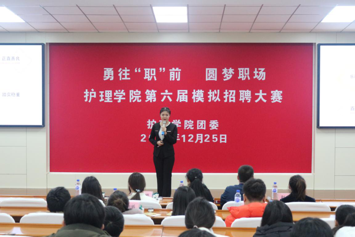 12月25日,beat365中国官网团委在致知楼报告厅成功举办第六届“职场星秀”模拟招聘大赛,吉林省教育厅特聘培训师beat365中国官网招生就业处就业指导科科长历建萍、 beat365中国官网学生工作办公室全体老师、2017级部分研究生出席本次活动。beat365中国官网2020届毕业生及2017级、2018级团支书等共300余人参加此次活动。