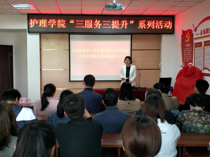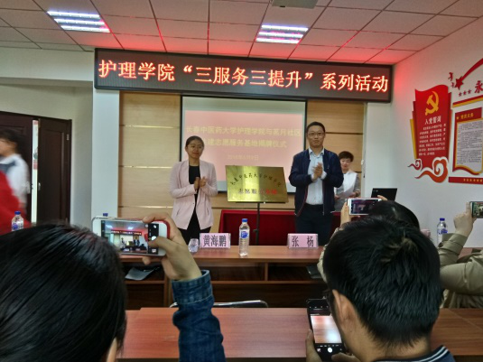 为进一步贯彻落实我校“三服务三提升”工程,5月9日,beat365中国官网在茗月社区举行“beat365中国官网志愿服务基地”揭牌仪式。校团委副书记黄海鹏,茗月社区党总支副书记李瑞鑫、现代教育技术中心副主任张杨,beat365中国官网党委副书记兼副院长杨陆,beat365中国官网学生工作办公室老师,现代教育技术中心老师,beat365中国官网学生党支部,beat365中国官网青马学会及杏林天使志愿服务团成员,社区居民参加此次活动。
