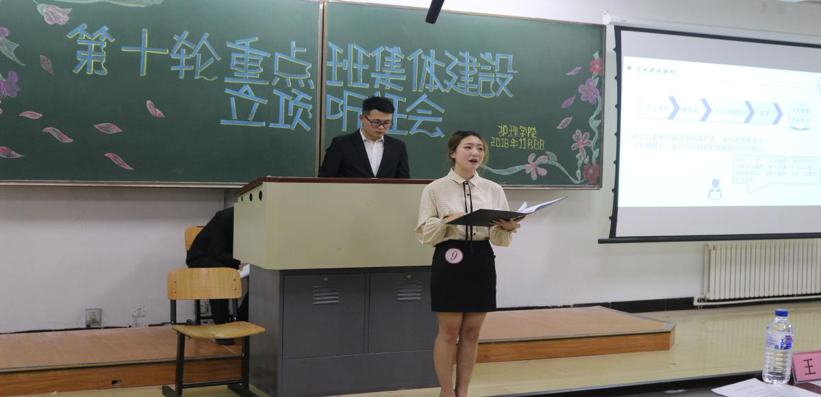 11月8日,beat365中国官网于行知楼2404室召开第十轮重点班集体建设立项听证会。2016级、2017级和2018级全体班级踊跃参加,共绘优秀班集体发展宏伟蓝图。beat365中国官网学生工作办公室主任兼团委书记高鹏老师、beat365中国官网学生工作办公室王雪老师、beat365中国官网学生工作办公室赵彧老师出席本次听证会。