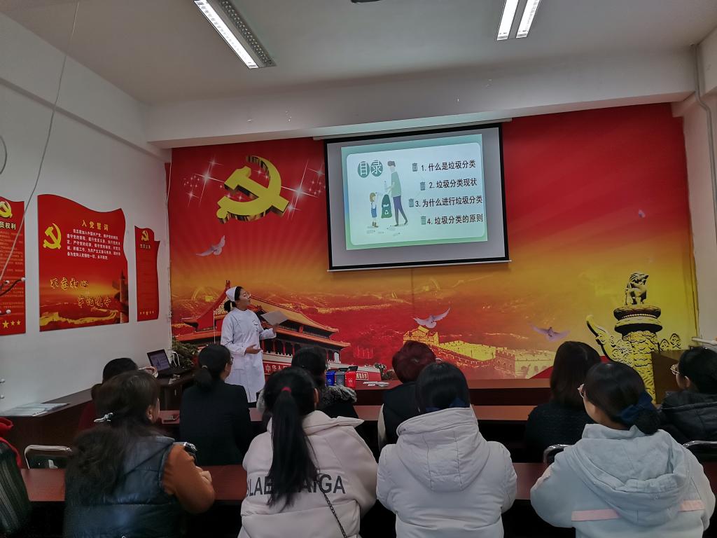 活动过程中,服务团成员从什么是垃圾分类、为什么进行垃圾分类、垃圾分类的现状、垃圾分类的原则四个方面向居民进行了垃圾分类知识讲解,帮助居民树立了对垃圾分类意识。为进一步传播健康理念,维系群众健康,服务团成员为居民进行测量血压等基础护理保健服务,并向居民发放冬季养生知识宣传单,同时对居民提出的相关问题给予细致解答,获得居民一致好评。