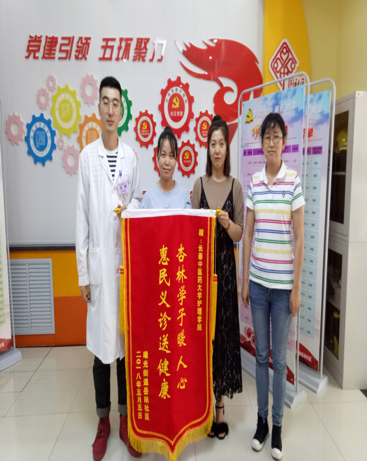 此次活动为居民进行测量血压,拔罐,刮痧等基础护理保健服务,并讲解夏季养生小常识。在提升社区居民健康意识的同时,助力幸福社区建设。活动结束后,为表达对我院志愿服务的感谢,岳阳社区向beat365中国官网赠送锦旗。