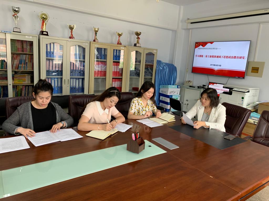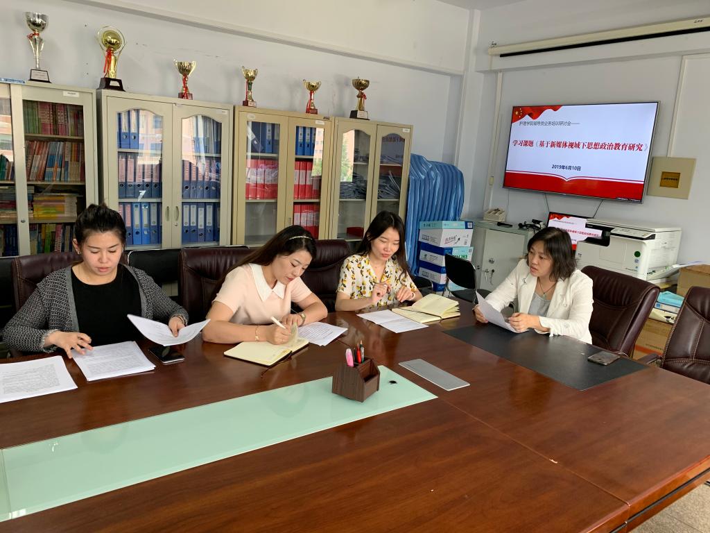 全体学工干部讨论了拟申报课题《基于新媒体视域下思想政治教育研究》的研究背景、内容及意义。赵彧分享了查找的文献资料和研究进展,杨陆从课题名称、课题设计论证两个角度进行细致指导,她指出本课题要注重创新性,立足教育发展实际,研究学生日常教育管理中的重点热点问题,细化研究目标,加强研究针对性。参会人员就课题本身选题、研究方法等方面的的疑问、科研工作中的疑虑以及交流中的感悟展开了热烈讨论。