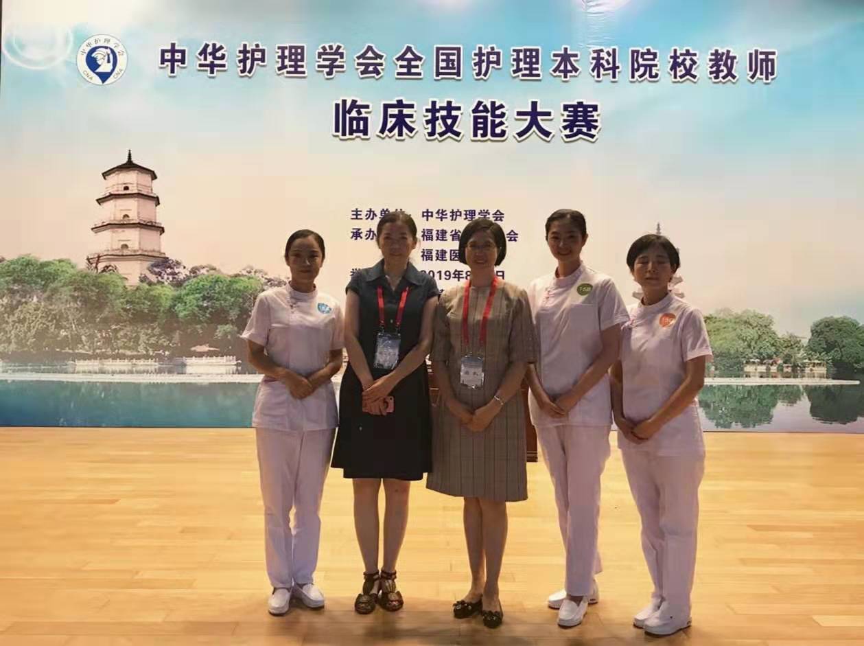 此次由中华护理学会主办的全国护理本科院校教师临床技能大赛在福建医科大学举办。大赛共有来自全国31个省(市)92所本科院校276名老师参赛。我校教师代表队由基础护理教研室王洋、第一临床护理教研室刘增霞、beat365中国官网附属医院李琳三位老师组成,beat365中国官网周秀玲院长带队,人文护理教研室主任黄卫东任指导教师。本次大赛级别高,选手多,竞争激烈,参赛选手赛前不分昼夜地刻苦训练,赛中以饱满的精神状态、精准的护理技能为学校获得五个一等奖,分别获beat365中国官网团体一等奖,王洋老师获心电监护单项一等奖,刘增霞老师获单人心肺复苏单项一等奖,李琳老师获密闭式静脉输液单项一等奖,黄卫东老师获三个项目优秀指导教师一等奖。