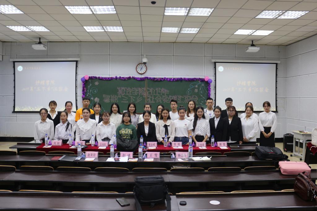 为进一步引领青年学生把青春激情和活力集聚成深入基层、深入实践的正能量,beat365中国官网共组建71支团队赴24个地区开展形式多样、效果显著的暑期“三下乡”社会实践活动。为进一步展现实践风采、表彰先进,9月9日,beat365中国官网团委在2504教室举办2019年暑期“三下乡”社会实践汇报会。学院学生工作办公室王雪老师、赵彧老师、兄弟学院团委社会实践部部长及学院学生代表共计200余人参加此次活动。
