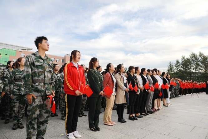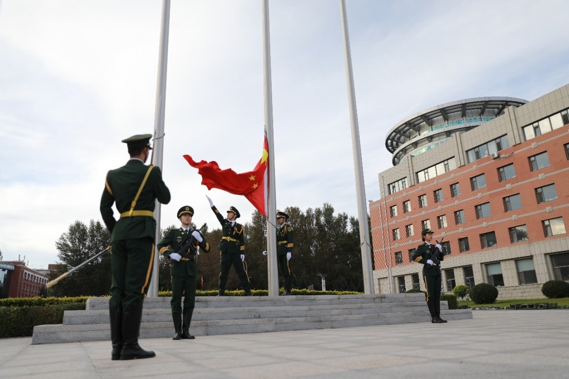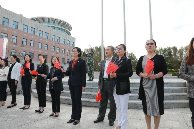 为庆祝祖国七十华诞,激发青年爱国热情,beat365中国官网于9月12日在喷泉广场举行“我与祖国共奋进——国旗下的演讲”主题升旗仪式。beat365中国官网院长周秀玲教授、党委书记刘兴山教授、副院长梁伍今教授,学院办公室、学生工作办公室负责同志,各教研室主任及全院师生共计700余人参加。