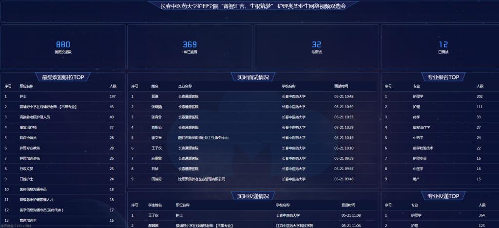 据网站后台数据显示,本次双选会共吸引包括上海新起点康复医院、上海津石医药科技有限公司、长春通源医院等72家用人单位前来参会,提供岗位175个,参与总人数896人,浏览量达到6144次。