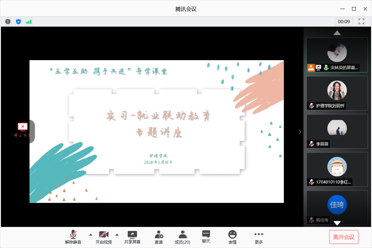与此同时,作为优秀实习生的学姐们也为同学们讲解着各地医院的实习细节和护理文化,解答了同学们对于实习期间如何自律学习、把握个人生活等方面的问题和疑惑,为同学们未来的实习生活提供了不可或缺的信息资源,也为以后的就业方向有了深刻思考。