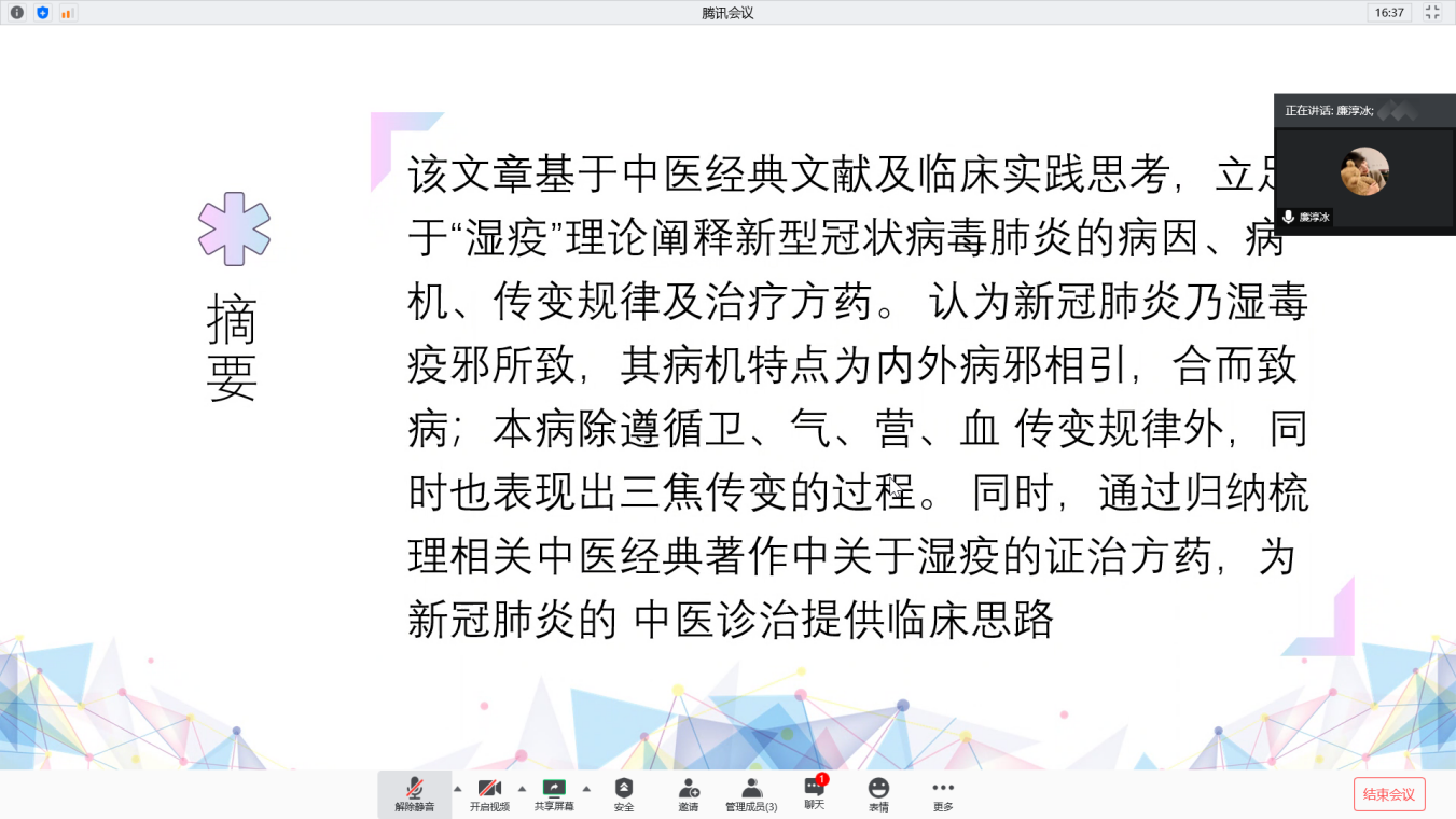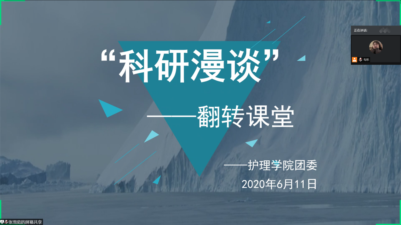 为提高我院学术科技兴趣小组成员对科研的兴趣,拓宽学术科技兴趣小组成员的科研视野。beat365中国官网团委于6月11日开展线上“科研漫谈”——翻转课堂。本次活动邀请2019级研究生孙丽欣、滑婧夷、王格作为嘉宾,学术科技兴趣小组全体成员参加本次活动。