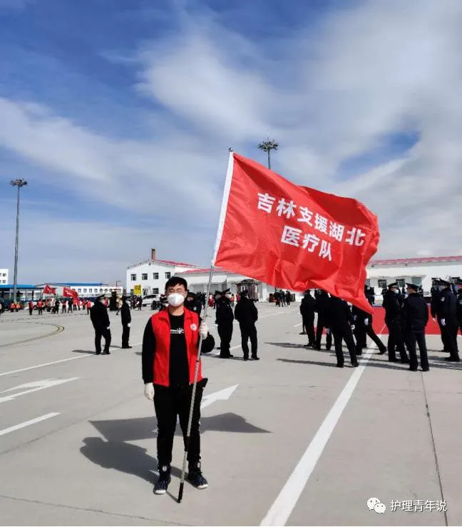 3月22日,王福龙随其他志愿者一起来到长白山机场,由于他在志愿服务期间表现优异,他荣幸地担任旗手一职。报名之初,王福龙并不知道自己参加的“欢迎仪式”所要迎接的人是谁,在等待的过程中,王福龙意外刷到一个令他激动不已的视频“深夜,50辆红旗集结待命,接吉林英雄回家!”在他得知他是在迎接吉林省援鄂医疗队首批反吉人员时,他原本激动的心更加热血沸腾!今天的任务无尚荣耀!他盼望着、盼望着,王福龙紧盯着手中的表,等待载着145位英雄的飞机抵达长白山机场,看着那架满载英雄的飞机缓缓降落,过了“水门”,当返程的医护人员走下悬梯的时候,王福龙将手中的旗挥舞得更加招展、更加飞扬!