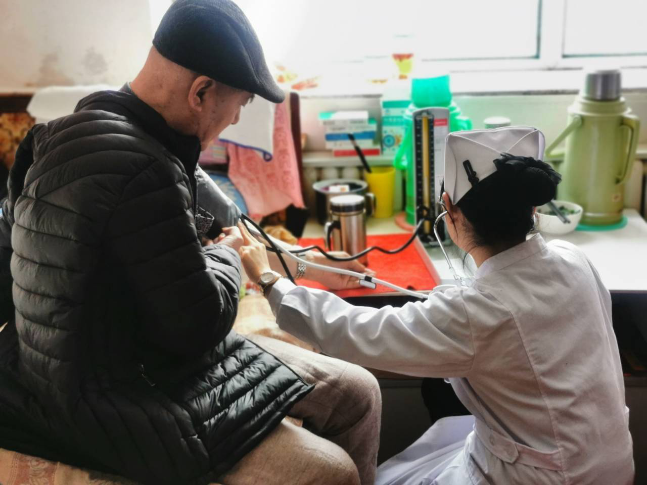 活动过程中,成员们为居民进行测量血压、刮痧等基础护理保健服务。为进一步增强居民健康意识、防病意识,提升居民生活质量,服务团成员向居民发放冬季养生知识宣传单,并对居民提出的相关问题给予细致解答,受到居民们一致好评。