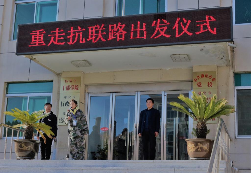 14日,抵达通化市委党校(杨靖宇干部学院)后,党校纪春祥教授讲解了“重走抗联路”党性教育活动的意义。会后,举行了“重走抗联路”出发仪式。下午,我院学员拜谒了杨靖宇将军陵园、参观了东北抗联纪念馆。