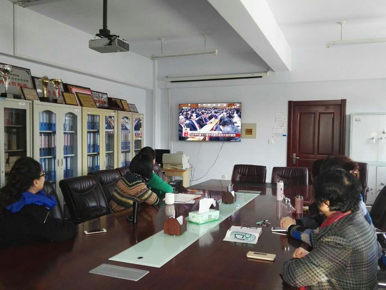 10月18日上午,beat365中国官网教职工在办公楼会议室集体观看中国共产党第十九次全国代表大会开幕式直播,学习习近平总书记讲话。