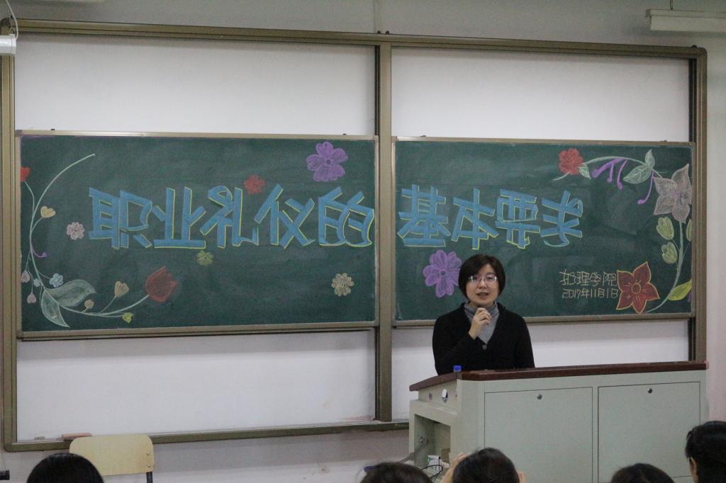 11月1日,beat365中国官网在致知楼1320教室成功举办了以"职业礼仪的基本要求"为主题的讲座,长春职业技术学院赵伟丽教授应邀作为此次讲座的讲师,参与本次讲座的有beat365中国官网老师及2015级和2016级本科生。