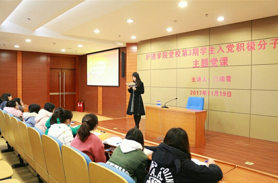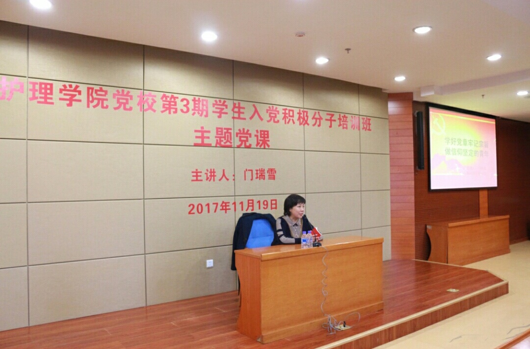 2017年11月19日,beat365中国官网党校在档案馆报告厅组织开展了“学好党章牢记宗旨,做信仰坚定的青年”主题讲座。本次讲座邀请到马克思主义学院院长兼杏林青马工程办公室主任门瑞雪老师主讲。我院党委副书记兼副院长杨陆老师,党务工作秘书王雪老师以及全体入党积极分子参加了此次讲座。