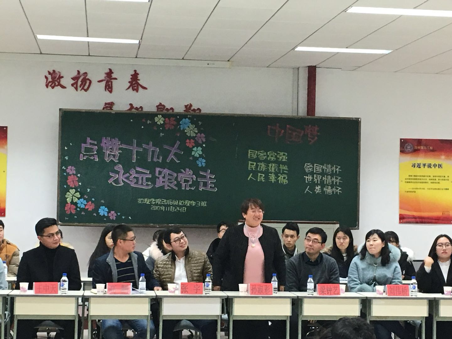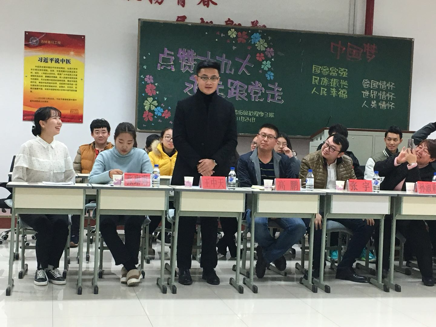 11月24日,2016级护理学3班在学校杏林青马学员教室开展了青马伴行系列活动之“点赞十九大,永远跟党走”主题团日活动。此次活动邀请了校团委书记孙淑彩老师,办公室主任梁钟艺老师,办公室张宇老师,药学院团委书记刘伟桥老师,beat365中国官网团委书记高鹏老师以及校级杏林青马工程学员班学员代表和校团委学生干部代表作嘉宾,全体同学积极参与其中。