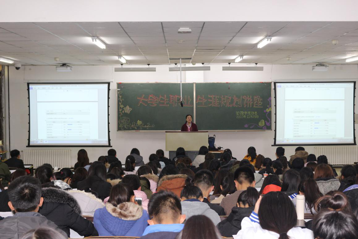 2017年11月29日,beat365中国官网团委就业创业部在行知楼2404教室成功举办“大学生职业生涯规划讲座”,吉林省教育厅特聘培训师历建萍老师应邀作为此次讲座的讲师,2017级全体新生参与本次讲座。
