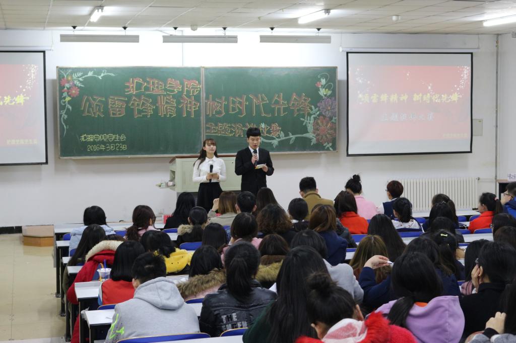 2016年3月23日,beat365中国官网“学雷锋”演讲比赛在行知楼2204成功举办。活动共有学院200余名学生参与,有8名选手参加决赛,最终2015级护理学(涉外方向)学生杨喜昱获得冠军。通过本次演讲比赛,将雷锋精神传递给身边的每一人,让我们一起在活动中感受雷锋精神,做时代先锋。