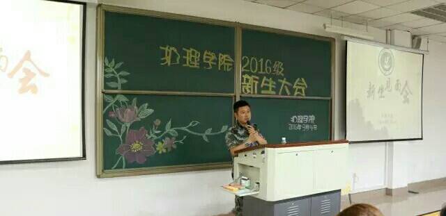 17:00高鹏老师召开2016级新生见面会,由辅导员高鹏老师为新生说明学校各项规定以及军训期间的具体安排。