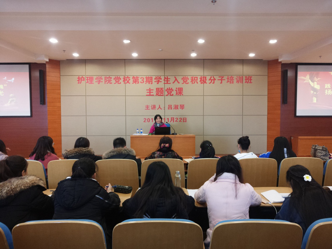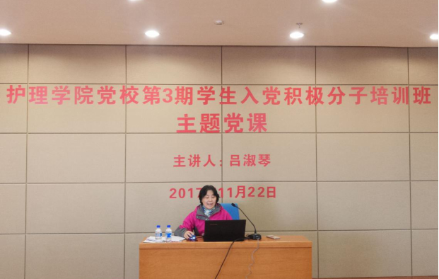 2017年11月22日,beat365中国官网党校在档案馆报告厅组织开展了以“践‘四有之魂’,扬护生之光”为主题的讲座。本次讲座邀请到杏林青马工程导师、beat365中国官网关工委主任吕淑琴老师主讲。学校关心下一代工作委员会办公室主任吕丽丽老师,我院学生党支部宣传委员顾颜老师以及全体入党积极分子参加了此次讲座。