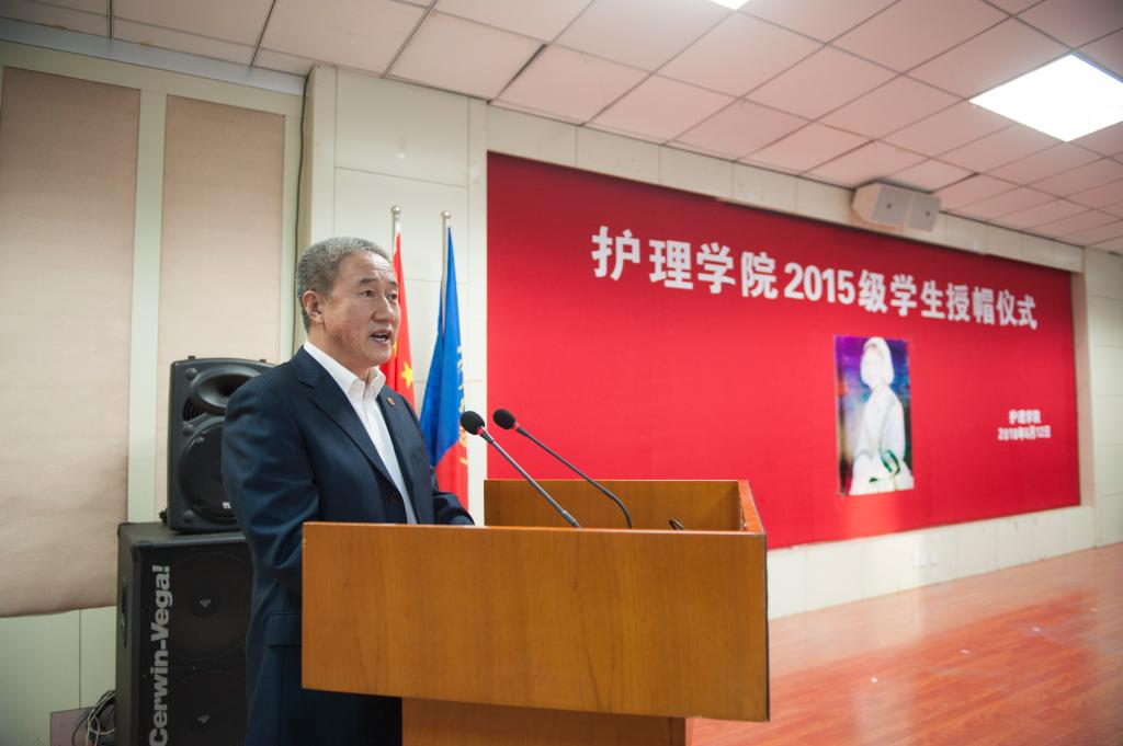 仪式开始,刘兴山院长对2015级学生提出了三点希望:坚定信念,发扬南丁格尔精神,做好护理事业的接班人;努力学习,不断加强护理理论与实践,为助力健康中国贡献青春力量;团结协作,共同弘扬护理人精神。