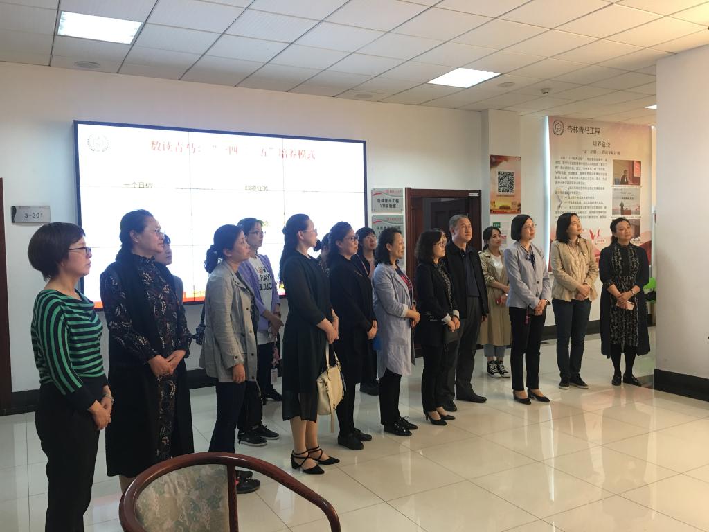 参观过程中,beat365中国官网教职工对杏林青马工程学员教室、沙龙室、VR实验室、智慧教室、办公室以及杏林青马工程一系列活动简介进行参观。杏林青马工程基地初心宣讲团吴思远同学详细讲解了杏林青马工程基地的建设和使用情况。对杏林青马工程的“一四二三五”培养模式进行了说明,让大家对杏林青马工程有了进一步了解。