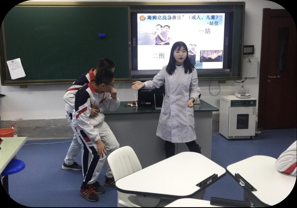 首先,在了解了同学们生活中均经历过鱼刺卡喉等不同程度的异物卡喉以后,李默洋同志详细的讲解了海姆立克急救法的概念,征象、成人站位急救法、成人卧位急救法、孕妇的急救法以及婴儿的急救法,通过示教、学生上台体验等课堂互动,同学们对海姆立克急救法掌握情况良好。