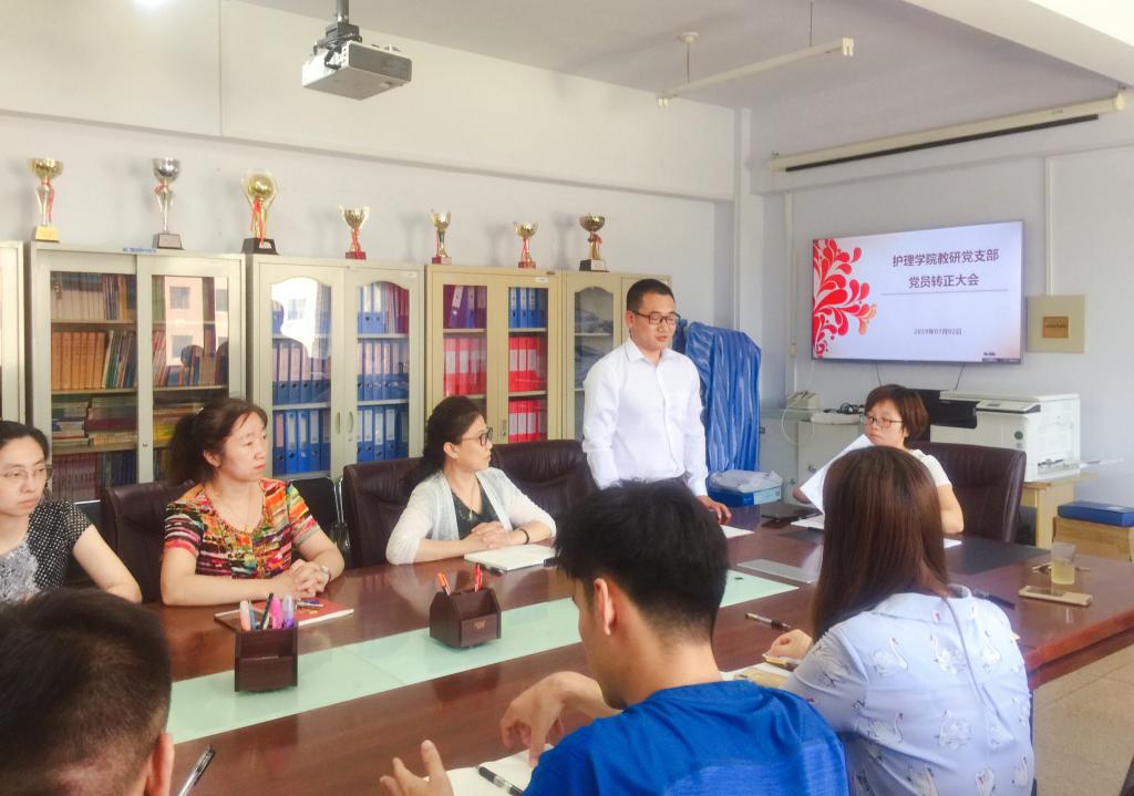 2019年7月2日,beat365中国官网教研党支部在办公楼321室召开预备党员转正大会。会议由党支部书记刘增霞同志主持,讨论关于叶树刚同志的转正问题,支部的14名正式党员参加了本次大会。